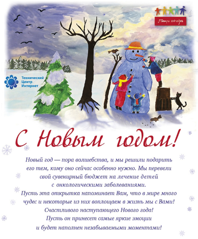 В преддверии нового, 2019 года Технический центр Интернет принял решение направить средства, предназначенные для подарков клиентам и партнёрам, на благотворительные цели. Наше пожертвование будет направлено в фонд «Подари жизнь» – деньги пойдут на закупку лекарств для детей с онкогематологическими заболеваниями.